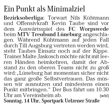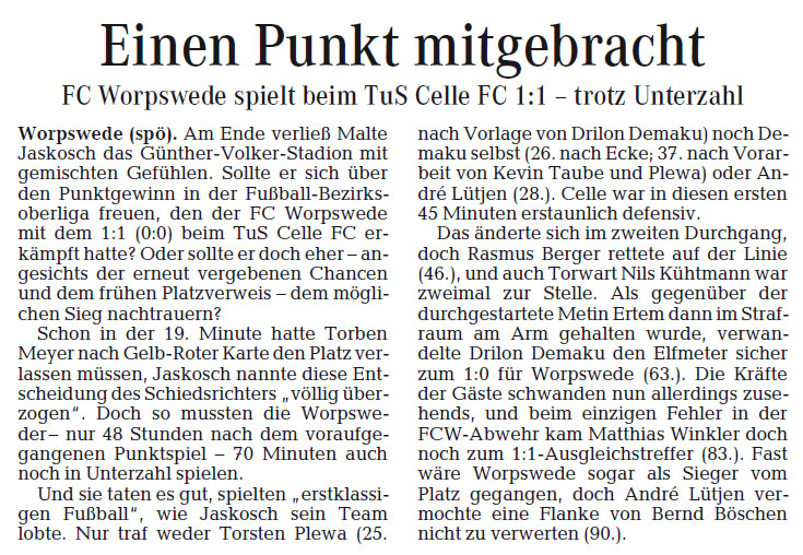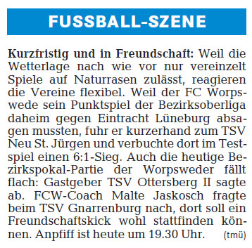 Tja, nicht nur für den FC Worpswede war die Partie beim TuS Bodenteich eine ganz