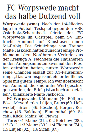 dann aber das wirklich wichtige Spiel gegen Etelsen trotz 2:0-