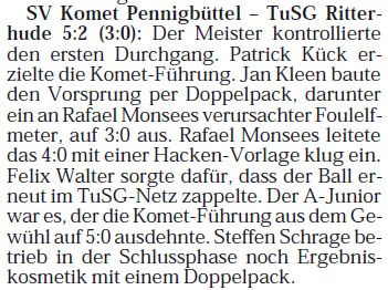 FC Hansa Schwanewede - SV Komet Pennigbüttel 2:3 (1:3)