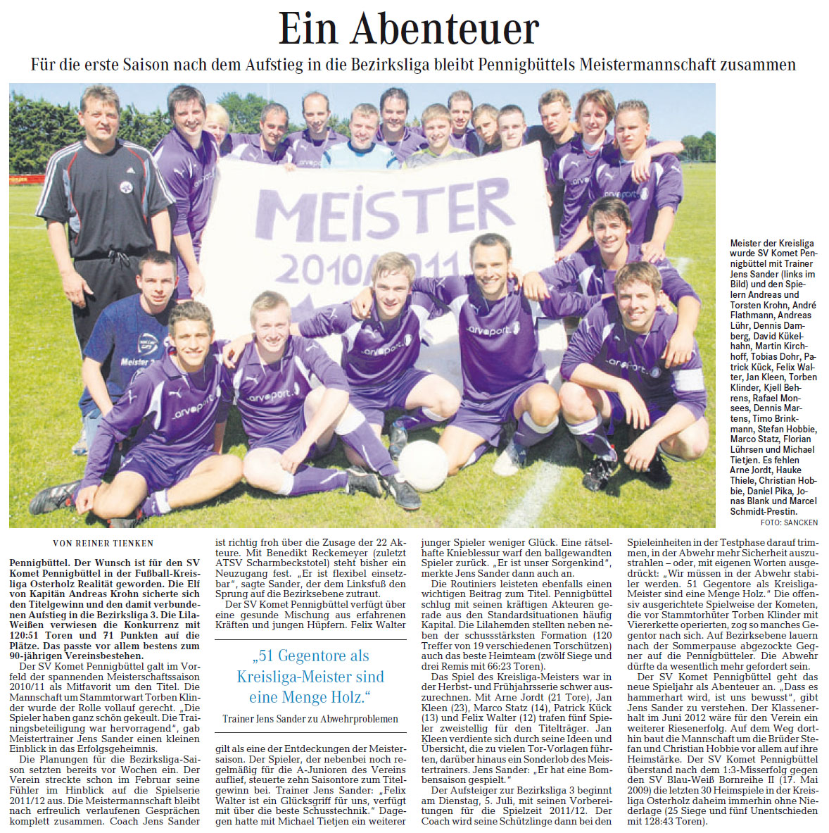Jungs, ich gratuliere zur Kreisliga-Meisterschaft 2010/2011!