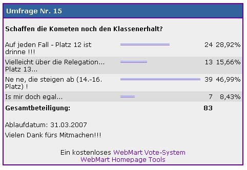 Ihr befindet Euch in: Umfrage => Umfrage-Ergebniss Nr. 15